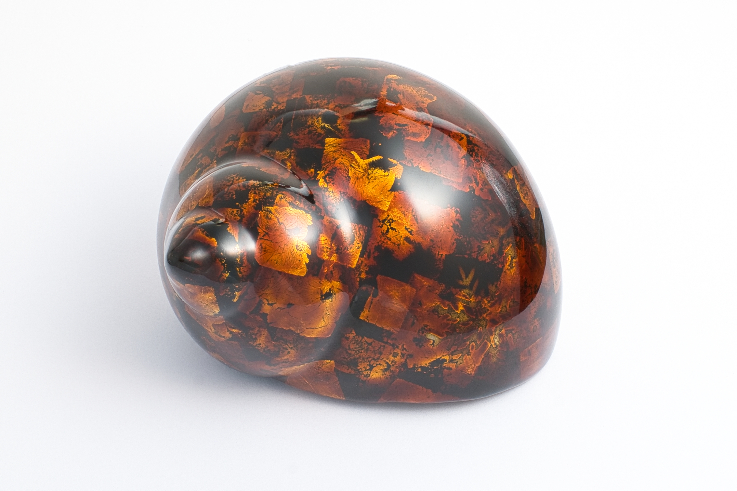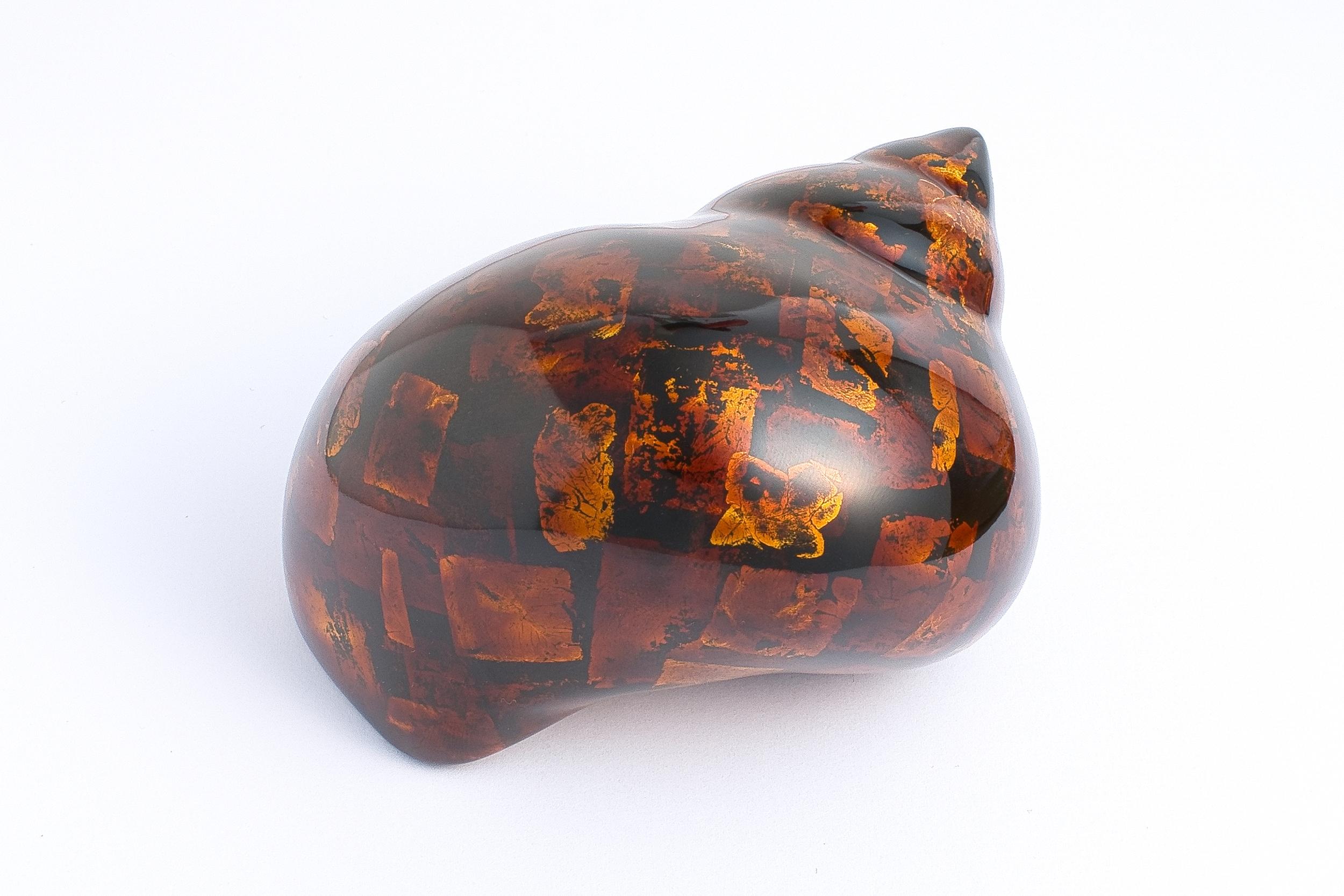 real sea snail prepared with grounding Urushi, lacquered with Roiro-Urushi and silver leaf silver, Nashiji and Kijiro Urushi